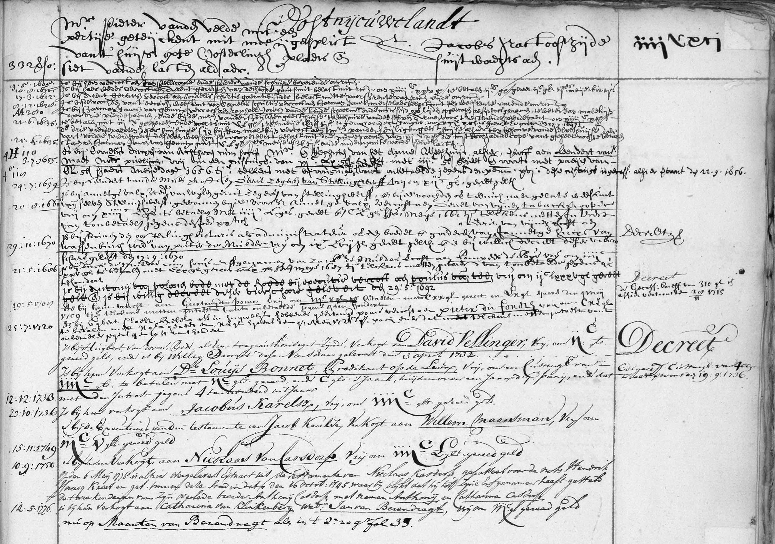 staen aen Harman Jansz van Gennip mit CL g[u]l[den] s[jaa]rs meije 1636 tj[ar]e om de indempuite van de selve lasten is bij Cornelis Dircxs van Achthoven cum socijs m[eeste]r ende regenten van het Anne Weeshuijs alhier vercosta aen Leendert vand[e]r Maes not[ari]s publijck vrij om een custingb[rief] van XJc LX g[u]l[den] te bet[alen] mit IIJC g[u]l[den] gereet XL g[u]l[den] sjaers meije dage 1656 tj[ar]e telkens met bijvouginge van ij__ast van t onbetaelde jegens den penn[ingen] XVJ dese custingbr[ief]is gecass[eert] alhier vertoont den 22.9.1656 is bij Leendert van de Maes vercost aen Gerrit Zegers van Stellingwerff vrij om XIJC g[u]l[den] gereet gelth is bij Annetgje Valx wed[uw]e van wijlen Gerrit Zegersz van Stellingwerffende bij de voochden over t eenich naer gelate weeskint