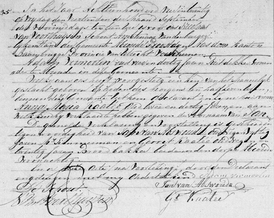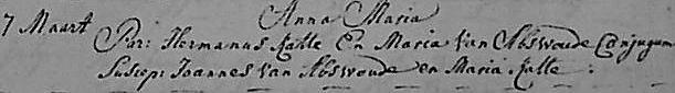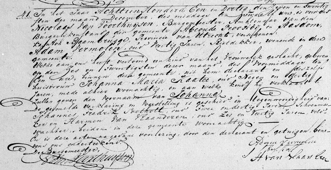 | 9. | v | Johanna (Anna) VERMOOLEN [7493]. Geb. op 26-12-1831 te Abcoude-Proostdij (bron: BS Abcoude-Proostdij). Overl. op 20-10-1832 te Abcoude-Proostdij, 299 dagen oud (bron: BS Abcoude-Proostdij). |