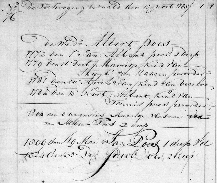 10. | v | Cornelia (Keetje) Alberts POES [935] (code: 2^08+115), geb. ±03-1757 te Sloten (zie 371). |