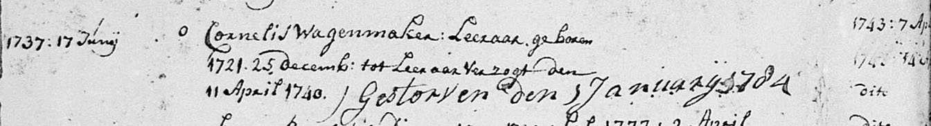 9. | m | Jan (Jan) Cornelisz WAGEMAKER [3519]. Geb. op 24-01-1759 te Wieringen (bron: ?). Overl. op 31-03-1759 te Wieringen, 66 dagen oud (bron: ?), begr. ? te ? |