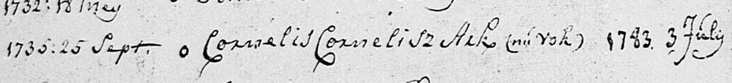 2. | m | Cornelis (Cornelis) Cornelisz FOK (Vok) [1735] (code: 2^08+198), geb. op 03-04-1744 te Wieringen (zie 454). |