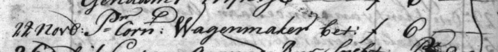 10. | m | Jan (Jan) Cornelisz WAGEMAKER [3473], bakker. Geb. op 15-05-1760 te Wieringen (bron: DTB Wieringen inv nr 692). ![]() ![]() Overl. op 08-12-1808 te Wieringen op 48-jarige leeftijd (bron: DTB Wieringen inv nr 21 + 694), aangifte 11-12-1808 ![]() ![]() ![]() ![]() Otr. [1288] ? te ? Tr. ? te ? Tr. kerk ? te ? Echtgenote is Antje (Antje) Simons RUITER (Kuut) [3474]. Geb. ? te ? Ged. ? te ? Overl. op 26-06-1819 te Wieringen (bron: BS Wieringen). ![]() ![]() Dr. van Simon (Simon) RUITER [3523] en ? (?) ? [3524]. |