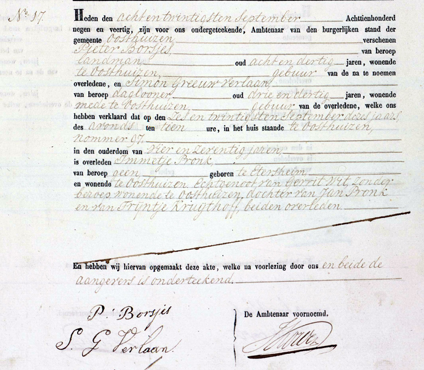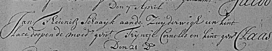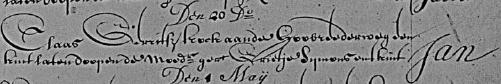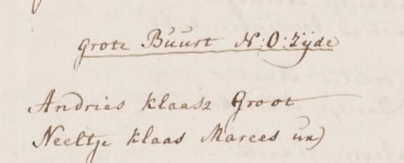 | 1. | m | Jan (Jan) Klaasz MAREES [13849]. Geb. ±11-1737 te ? (bron: ?), ged. (NG) op 29-11-1737 te Oosthuizen (bron: DTB Oosthuizen inv nr 2). Overl. voor 1739 te ? (bron: ?), begr. ? te ? |