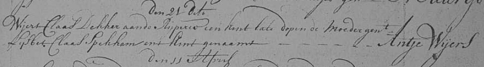 | 7. | m | Dirk (Dirk) Jansz KOK [16529]. Geb. ±03-1753 te ? (bron: ?), ged. (NG) op 25-03-1753 te Beemster (bron: DTB Beemster inv nr 2b). Overl. ? te ? Begr. ? te ? |
