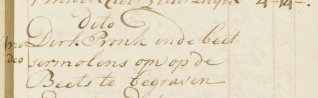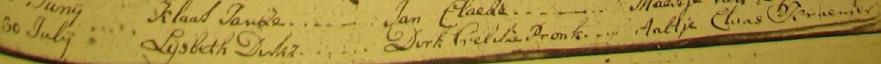 | 1. | v | Lijsbet (Lijsbet) Dirks PRONK [32868]. Geb. ±07-1757, ged. (NG) op 10-07-1757 te Beemster (bron: DTB Beemster inv nr 2a). Overl. voor 1769 te ? (bron: ?), begr. ? te ? |