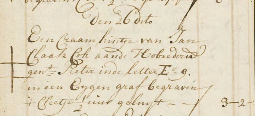 | 9. | v | Lijsbeth (Lijsbeth) Jans KOK [16527]. Geb. ±10-1756 te ? (bron: ?), ged. (NG) op 31-10-1756 te Beemster (bron: DTB Beemster inv nr 2b). Overl. ±11-1756 te Beemster (bron: DTB Beemster inv nr 8). , begr. op 25-11-1756 te Beemster (bron: DTB Beemster inv nr 8), graf E9 . |