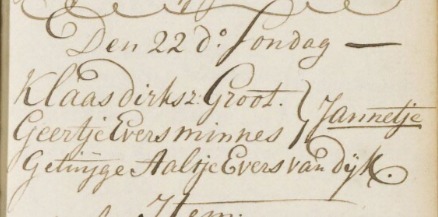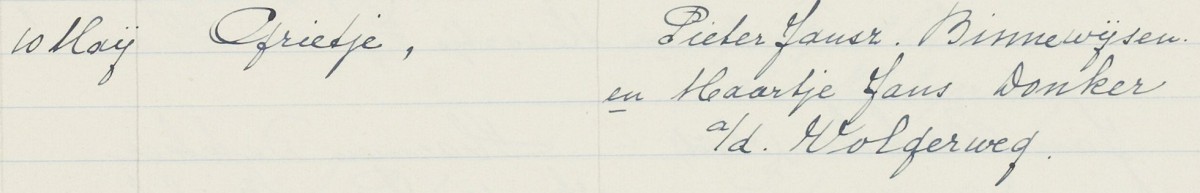 4. | v | Grietje (Grietje) Pieters BINNEWIJZEND [16452]. Geb. ±07-1768 te Beemster (bron: ?), ged. (NG) op 03-07-1768 te Beemster (bron: DTB Beemster inv nr 2b). ![]() Overl. voor 1778 te ? (bron: ?), begr. ? te ? |