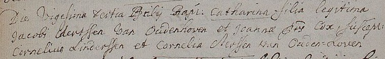 12. | v | Johanna (Johanna) Jacobus van den OUDENHOVEN [7526] (code: 2^09+341), geb. op 10-02-1732 te Oudenbosch (zie 853). |