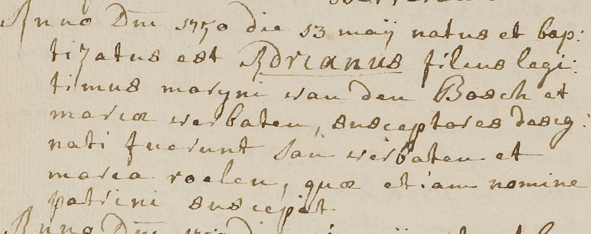 9. | m | Adrianus (Adrianus) Marinusz van den BOSCH [7645]. Geb. op 13-05-1750 te Oudenbosch (bron: DTB Oudenbosch RK dopen inv nr 5). ![]() ![]() Overl. ? te ? Begr. ? te ? |
