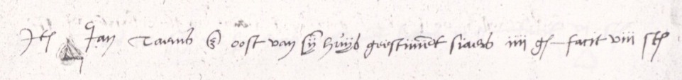 2. | m | Taam (Taam) Jansz TAAMSZ [32758]. Geb. ? te ? Ged. ? te ? Overl. ? te ? Begr. ? te ? - Op 05-02-1561 wordt ene Taam Jan Taams vermeld met een schuld aan Cornelis Jangis. (bron: ORA Spanbroek inv nr 5541 fol 71v) ![]() |