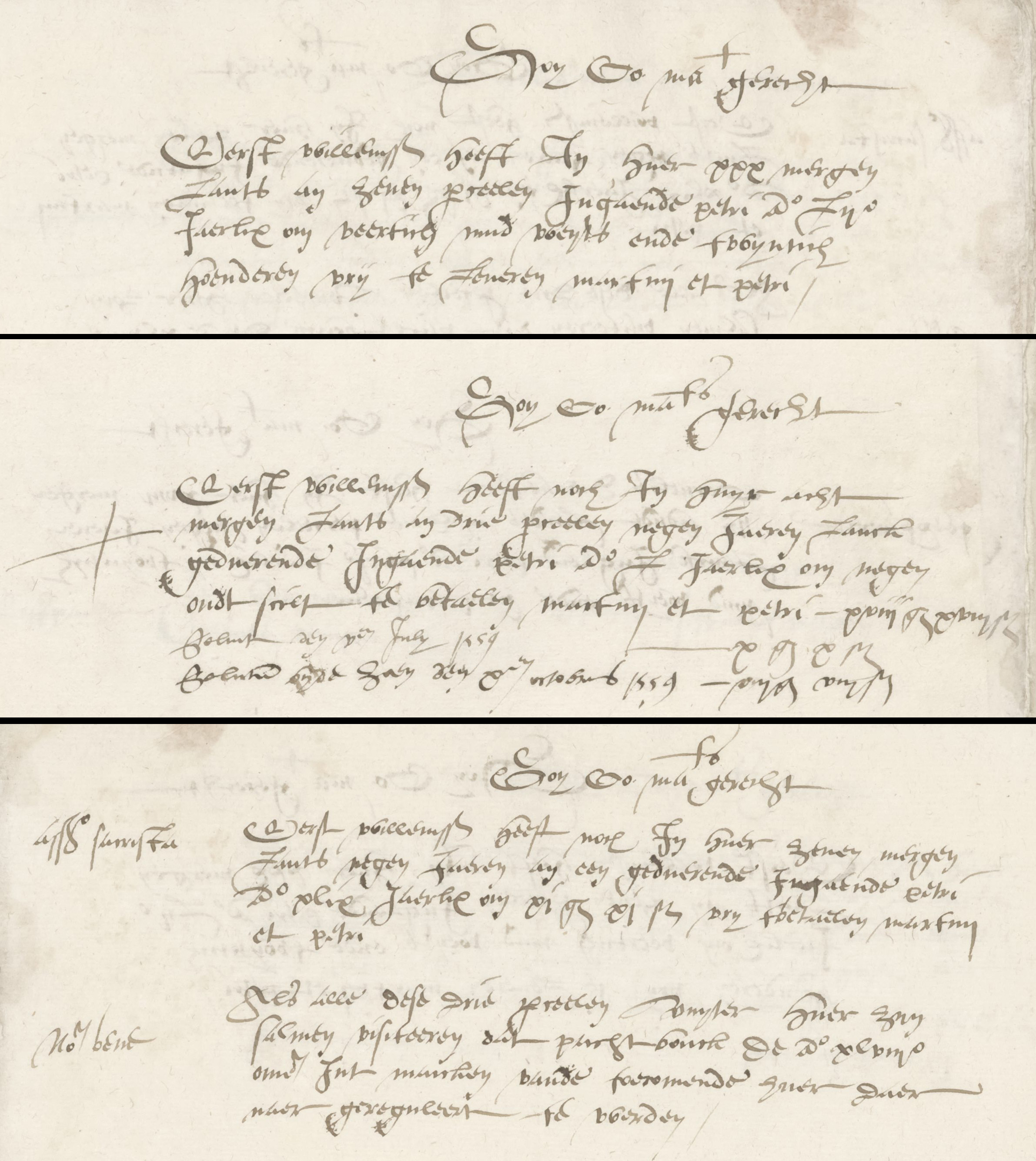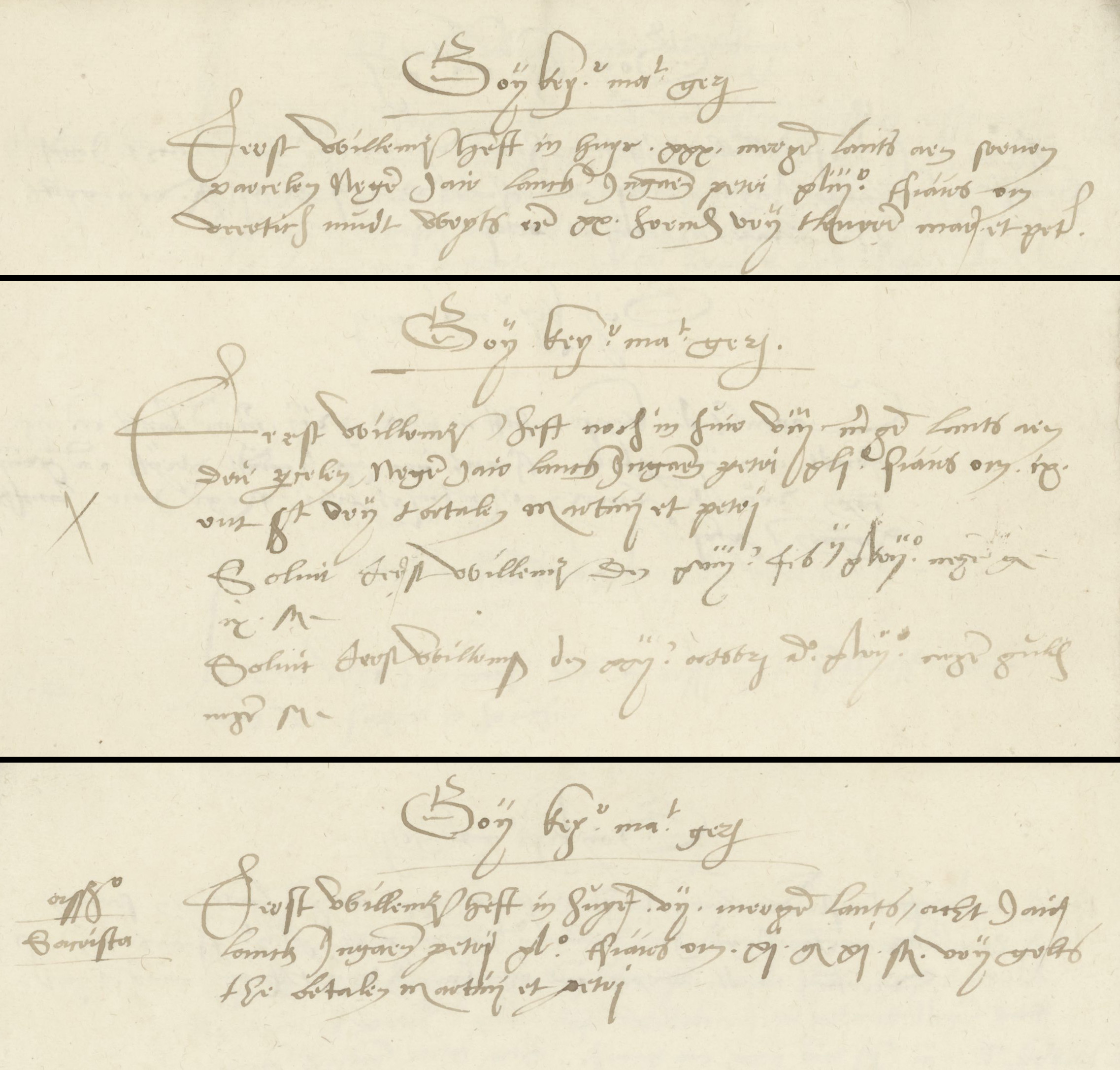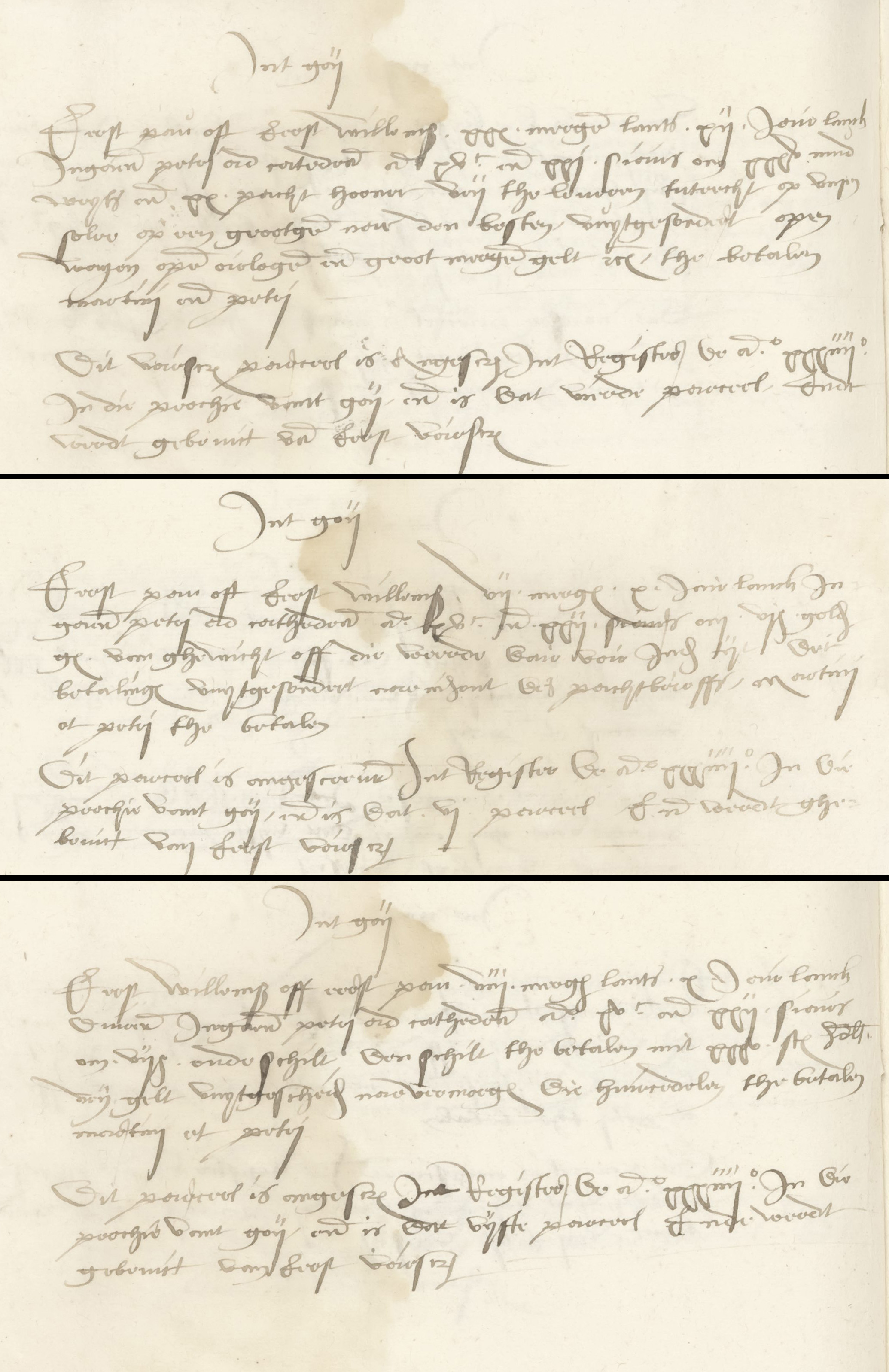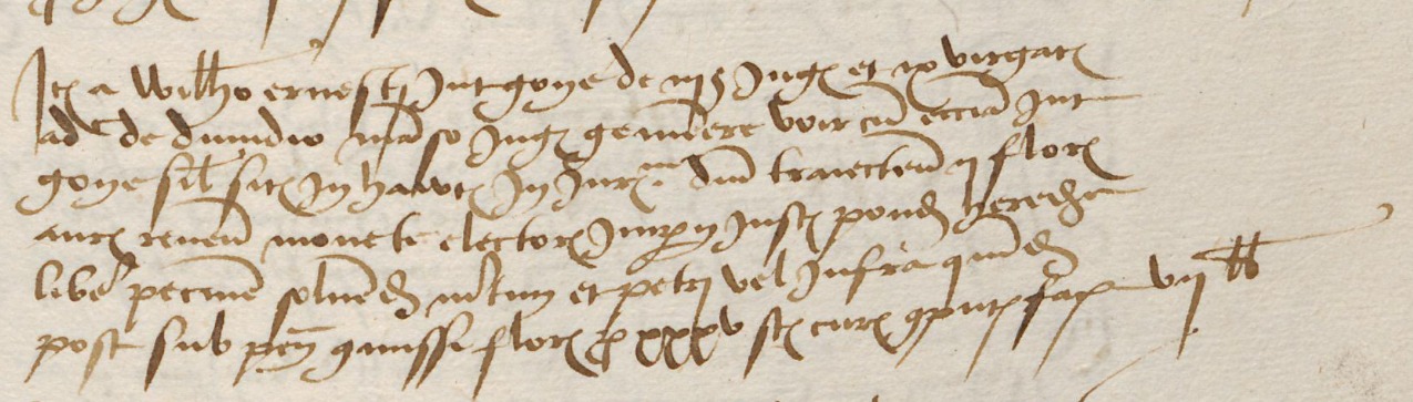 | 5. | v | Geertruida (Geertruida) Willems PAUW [29036]. Geb. ? te ? Ged. ? te ? Overl. ? te ? Begr. ? te ? - Op 10-07-1537 overdracht van de erfenis van Anthonis Eersten door zijn broer Jan Eerstensz aan o.a. de kinderen van broer Willem Eerstensz waaronder Geertruida Willems vrouw van Goijer Adriaans lijndraijer. (bron: 701-3 Hof Utrecht 704-23 fol 113) - Op 09-03-1560 worden de kinderen van Goeijert Adriaans genoemd als erfgenamen van wijlen hun oom Cornelis Adriaansz. Hij was gehuwd met Marichtje Goessens van Schaijk die inmiddels is hertrouwd met Hendrik Gerritsz. Genoemd worden de kinderen van wijlen zijn broers Goeijer Adriaansz en Jan Adriaansz. De erfenis betreft land in de Hoge en Lageweide. Genoemd worden Willem Goijertsz man Gerborch, Adriaan Goijertsz man van Dirkje, Geertruide Goijerts Adriaansz vrouw van Hendrik Jansz Block, Geertruida Jans Adriaansz vrouw van Hendrik Klaasz van der Laar, kinderen van Adriana Goijertsz Adriaansz en Cornelis en tot slot Aelbert van Doesburch man van Dirkje. Dit volgens 701 Utrecht 725 fol 110-111 (bron: ? (Utrechtse Parentelen voor 1650 deel 5)) - Op 13-01-1561 woont zij Geertruida weduwe van Goert Adrijaansz aan de tolsteeg naast Willem Goertsz lijndraaier. (bron: 701 Stadsbestuur van Utrecht inv nr 334-4) - Op 12-02-1561 draag Geertruida weduwe van Goort Adrijaans een huis en erfje aan de Tolsteeg over aan de stad Utrecht. (bron: 701 Stadsbestuur van Utrecht inv nr 334-5) - Op 12-02-1561 nogmaals overdracht door Geertruida weduwe van Goort Adrijaans van een erfje aan de oostzijde van de Tolsteeg over aan de stad Utrecht. Dit volgens 701 Utrecht 705-18 fol 55-56 (bron: ? (Utrechtse Parentelen voor 1650 deel 5)) - Op 29-04-1586 testament van Geertuida Willems Eerstensz weduwe van Goijert Adriaansz waarvooer haar op 07-06-1563 octrooi is verleend. Erfgenamen zijn haar zoons Willem Goijertsz en Cornelis Goijertsz en de kinderen van dochters Teuntje Goijertsz, Geertje Goijertsz zoon Jan Hendriksz Keijzer en tot slot haar zoons zoon Cornelis Adriaansz zoon van [Cornelis Adriaansz Goijertsz en] Elisabet. Dit volgens ONA Utrecht u003a004 (bron: ? (Utrechtse Parentelen voor 1650 deel 5)). Otr. [8727] ? te ? Tr. ? te ? Tr. kerk ? te ? Echtgenoot is Goijer (Goijer) Adriaansz ? [29037]. Geb. ? te ? Ged. ? te ? Overl. ? te ? Begr. ? te ? Zn. van Adriaan (Adriaan) ? [29038] en ? (?) ? [29039]. - Op 08-02-1537 overdracht van de erfenis binnen Utrecht van Antonius Eersten door Engbert Gijsbertsz man van Gouda [Gerrits van Wijk] uit 't Goy, Eerst Gerritsz [Eerstensz] man van Alida uit Houten, Dirk Sweersz man van Geertruida, namens Alida [Jans Eerstens] diens man Dirk Klaasz smid te Zoelmond aan Hendrik Willemsz [Eerstensz man van Haasje Jans Vos] en [Geertuida Willemsz Eerstensz vrouw van] Goijer Adriaansz. Antonius Eersten [man van Geertruida Jans Hendriks] is hun of hun partners oom. (bron: 701-3 Hof Utrecht 704-23 fol 25) - Op 23-01-1543 boedelscheiding van de erfgenamen van Anthonis Eerstensz en Gijsbertje Jans Hendriksz. Als erfgenamen van Antonis Eersten worden o.a. Geertuida [Willemsz Eerstensz] vrouw van Goijer Adriaansz lijndraaier. Er volgen een aantal verklaringen waaronder van Hendrik Willemsz [Eerstensz] en [de man van Geertuida Willemsz Eerstensz] en Goijer Adriaansz die verklaren de erfenis te hebben voldaan aan Engbert Gijsbertsz [man van Gouda Gerrits van Wijk] in 't Goy, Dirk Sweersz [man van Geertruida] te Schalkwijk, [Alida Jans Eerstensz man] Dirk [Klaasz] smid te Zoelmond, Akrijn Willemsz [Eerstensz] weduwe Maria en hun kinderen Antonius, Gijsbert, Maria, Jannetje, Cornelia, Anna en Magdalena. (bron: 701-3 Utrecht 704-29) - Op 16-03-1554 verwijzing naar uitspraak van 05-08-1552 waarin Goort Adriaansz lijndraier optrad voor Elisabeth Vossen weduwe van Marcel Gerritsz [Marcelsz] in een zaak tussen haar en Geertuida weduwe van Spijker Gerritsz uit Hagestein. Ook op 22-09-1552 heeft Elisabeth Vossen een bij het gerrecht geweest om te verklaren dat ze in 1544 met Marcel in gemeenschap van goederen was getrouwd te Utrecht. Verder genoemd de zus van wijlen Marcel Gerritsz [Marcelsz] Celij Gerrits Marcellisz en haar man Cornelis Albertsz en zijn broer Cornelis Gerritsz [Marcelisz]. (bron: 239-1 Hof Utrecht inv nr 188-3 fol 286) |