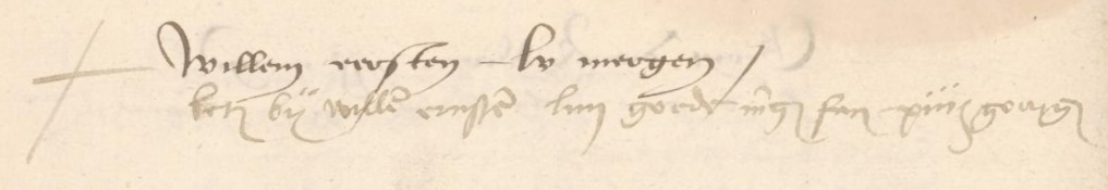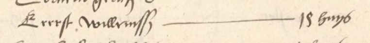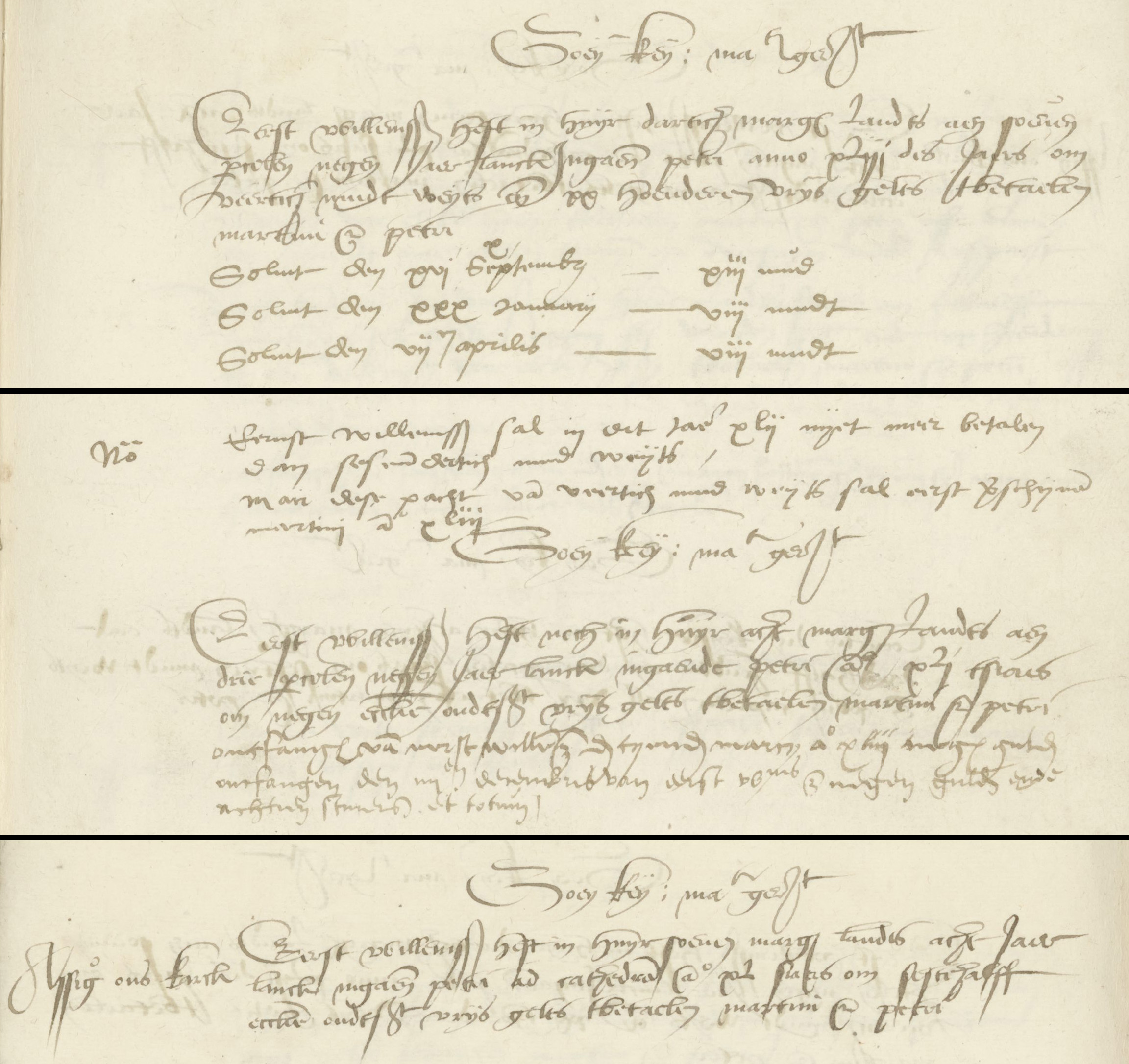 | 4. | m | Eerst (Eerst) Willemsz PAUW [28501]. Geb. ? te ? Ged. ? te ? Overl. rond 1560 te ? (bron: ?), begr. ? te ? - Op 22-02-1515 wordt Eernst Willemsz vermeld als zoon van Willem Eernst en Geertruid met 2 morgen en 4 hond land die hij in pacht heeft van de heren van Oudmunster te Utrecht Herman Acrijnsz zegeld voor hem. (bron: 223 heren Oudmunster inv nr 1347-2/3) - Op 09-06-1520 wordt Eerst Willemsz vermeld met 30 morgen land in 't Goij die hij in pacht heeft van de Riddelijke Duitsche Orde te Utrecht. Dit land werd eerder door zijn vader Willem Eerstsz gepacht. Zijn oom Tonis Eerstsz zegeld voor hem. (bron: RDO Ridderlijke Duitsche Orde inv nr 1137-0-3 + inv nr 666.0.1 fol 137)) - tussen 1522-1562 vermelding Eerst Willemsz Pauw. (bron: RDO Ridderlijke Duitsche Orde inv nr 880.0.18 t/m 880.0.44) 1522-1524 1526-1527 1530-1534 1538-1539 1540-1541 1547-1548 1550-1551 1554-1555 1556-1557 1560-1561 - Op 09-04-1522 wordt Eerst Willemsz Pauw vermeld met 8 morgen land in 't Goij die hij in pacht heeft van de Riddelijke Duitsche Orde te Utrecht. Dit land werd eerder door zijn vader Willem Eerstsz gepacht. Zijn oom Tonis Eerstsz zegeld voor hem. (bron: RDO Ridderlijke Duitsche Orde inv nr 1138-0-3 + inv nr 666.0.1 fol 146) - Op 09-04-1522 wordt Eerst Willemsz Pauw vermeld met 7 morgen land in 't Goij die hij in pacht heeft van de Riddelijke Duitsche Orde te Utrecht. Dit land werd eerder door zijn vader Willem Eerstsz gepacht. Zijn oom Tonis Eerstsz zegeld voor hem. (bron: RDO Ridderlijke Duitsche Orde inv nr 666.0.1 fol 155) - Op 22-09-1522 wordt Eerst Willemsz Pauw vermeld met 7 morgen land in 't Goij die hij in pacht heeft van de Riddelijke Duitsche Orde te Utrecht. Dit land werd eerder door zijn vader Willem Eerstsz gepacht. Zijn oom Tonis Eerstsz zegeld voor hem. (bron: RDO Ridderlijke Duitsche Orde inv nr 1140-0-2) - In 1525 wordt Eerst Willems aangeslagen met 1 1/2 huis in 't Goy in het huisgeld register. (bron: Staten van Utrecht inv 58-373) - Op __-__-1531 krijgt Ernst [Willemsz] een leen van een viertel te Schalkwijk van het kapittel van Sint Pieter. Dit bij overdracht van Anton Ernst man van Gijsbert[je] dochter van Jan Hendriksz die de lijftocht behouden. [Op 28-07-1576 gaat deze pacht naar Ernst Willemsz Pauw bij dode van Willem Ernstsz] Dit volgens inv nr 919-1 fol 70 (bron: ? (HOGENDA)) - Op 27-01-1531 wordt Ernst Willemsz in 't Goy genoemd met een leen te Schalkwijk van het kapittel van Sint Pieter bij overdracht van Pieter Grebber. Dit volgens inv nr 919-1 fol 70v (bron: ? (HOGENDA)) - Op 10-03-1531 wordt Eerst Willemsz Pauw vermeld met 8 morgen land in 't Goij die hij in pacht heeft van de Riddelijke Duitsche Orde te Utrecht. Antonis de Man zegeld voor hem. (bron: RDO Ridderlijke Duitsche Orde inv nr 1138-0-4) - Op 10-03-1531 wordt Eerst Willemsz Pauw vermeld met 3 percelenen die hij huurt van het Duitse huis te Utrecht. Anthonis de Man zegelt voor hem. (bron: RDO Ridderlijke Duitsche Orde inv nr 666.0.1 fol 146) - Op 16-06-1532 wordt Eerst Willemsz vermeld met 30 morgen land in 't Goij die hij in pacht heeft van de Riddelijke Duitsche Orde te Utrecht. Acrijn Willemsz wordt vermeld met naastgelegen land. Antonis de Man voor hem. (bron: RDO Ridderlijke Duitsche Orde inv nr 1137-0-4 + 666.0.1 fol 138) - in 1533 wordt Eerst Willemsz Pauw vermeld met zijn pachtgronden in (bron: RDO Ridderlijke Duitsche Orde inv nr 890.0 fol 11) - Op 20-02-1533 wordt Eerst Willemsz Pauw vermeld met 7 morgen land in 't Goij die hij in pacht heeft van de Riddelijke Duitsche Orde te Utrecht. Anthonis de Man zegeld voor hem. (bron: RDO Ridderlijke Duitsche Orde inv nr 1140-0-3 + 666.0.1 fol 155b) - Op 03-03-1535 wordt Eerst Willemsz vermeld met 1 ploeg. Dit volgens Staten van Utrecht inf 58-390 (bron: ? (Utrechtse Parentelen voor 1650 deel 5)) - Op 04-08-1535 wordt Eerst Willemsz Pauw vermeld met 30 + 8 morgen en een huis in t Goij die hij huurt van het Duijtsehuis te Utrecht. Acrijn Willemsz wordt vermeld met naastgelegen land. Hij zegelt zelf met een pauw. (bron: RDO Ridderlijke Duitsche Orde inv nr 1146-1-1) - In 1536 wordt Eernst Willemsz vermeld als gebruiker van 4 morgen in 't Goy van Jan Roeksz. Dit volgens oudschildgeld (bron: ? (Utrechtse Parentelen voor 1650 deel 5)) - Op 10-07-1537 overdracht van de erfenis van Anthonis Eersten door zijn broer Jan Eerstensz aan o.a. de kinderen van broer Willem Eerstensz waaronder Eerst Willemsz. (bron: 701-3 Hof Utrecht 704-23 fol 113) - Op 11/12-02-1539 wordt Eerst Willemsz Pauw vermeld met 7 morgen land in 't Goij die hij in pacht heeft van de Riddelijke Duitsche Orde te Utrecht. Anthonis de Man zegeld voor hem. (bron: RDO Ridderlijke Duitsche Orde inv nr 1140-0-4 + 666.0.1 fol 155b) - 1541 schepen van Houten en 't Goy (bron: ?) - Op 29-11-1541 is Cornelis Willemsz overleden en vervalt zijn pacht van 4 morgen en 9 roeden in 't Goij op zijn Eernst Cornelisz. De moeder van Eernst genaamd Adriaan Cornelis Klaasz behoudt haar lijftocht. Eernst Willemsz wordt genoemd met naastgelegen land. (bron: 216 Dom Kapittel Utrecht inv nr 1222-11 + 1085-1 fol 87) - Op 23-01-1543 boedelscheiding van de erfgenamen van Anthonis Eerstensz en Gijsbertje Jans Hendriksz. Als erfgenamen van Antonis Eesrten worden o.a. Eerst Willemsz [Eerstensz] man van Lijsbeth [] in 't Goy. (bron: 701-3 Utrecht 704-29) - Op 10-11-1543 wordt Eerst Willemsz genoemd in de criminele sententie wegens de doodslag door Jan van Oostrum uit Utrecht op Evert Hermansz. Dit volgens 239-1 Hof Utrecht inv nr 99-2 fol 45 (bron: ? (Utrechtse Parentelen voor 1650 deel 5)) - Op 07-09-1549 wordt Eerst Willemsz Pauw vermeld met 30 + 8 morgen in t Goij die hij huurt van het Duijtsehuis te Utrecht. Hij zegelt zelf met een pauw. (bron: RDO Ridderlijke Duitsche Orde inv nr 1140.0.15 + inv nr 660.0.1 fol 138) - Op 07-09-1549 wordt Eerst Willemsz Pauw vermeld met 7 morgen land in 't Goij die hij in pacht heeft van de Riddelijke Duitsche Orde te Utrecht. Anthonis de Man zegeld voor hem. (bron: RDO Ridderlijke Duitsche 