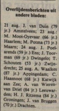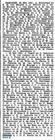 | 1. | v | ? (?) MOOI [805] Geb. op 24-05-1941 te Amsterdam (bron: advertentie). |
