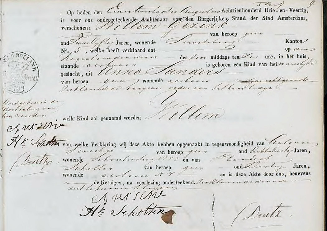 1. | m | Willem (Willem) OJEVAAR [80], geb. op 23-08-1825 te Amsterdam (zie VII.2). |