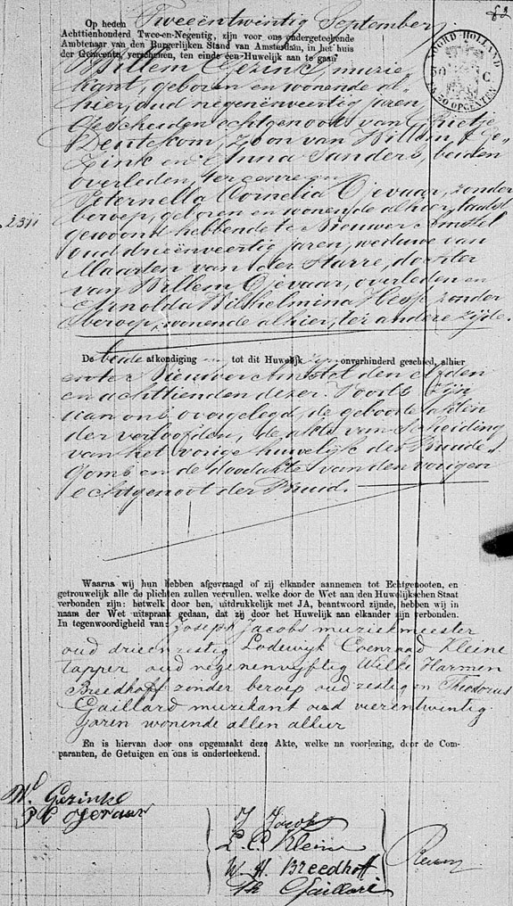 1. | m | Willem Jan (Willem Jan) OJEVAAR [118], geb. op 08-08-1862 te Amsterdam (zie VIII.12). |