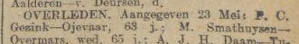 4. | v | Niesje Clasina Maria (Niesje Clasina Maria) OJEVAAR [114] ![]() Geb. op 28-07-1831 te Amsterdam (bron: BS Amsterdam), ged. ? te ? Overl. op 15-02-1833 te Amsterdam op 1-jarige leeftijd (bron: BS Amsterdam), begr. ? te ? |