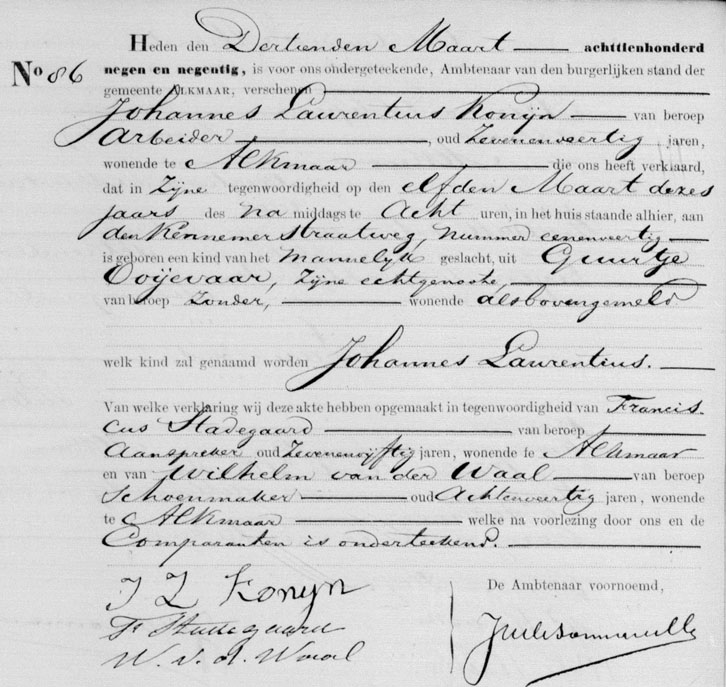 1. | m | Johannes Laurentius (Johannes Laurentius) KONIJN [1457] . Geb. op 24-04-1926 te Zaandam (bron: ?), ged. ? te ?