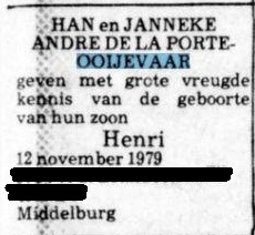 1. | m | Joerie (Joerie) OOIJEVAAR [900] ![]() Geb. op 23-12-1988 te Nieuwegein (bron: ?), ged. ? te ? |