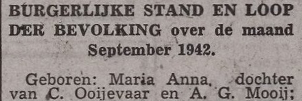 2. | v | Maria Anna (Maria) OOIJEVAAR [1463] ![]() Geb. ±09-1942 te ? (bron: advertentie). ![]() |