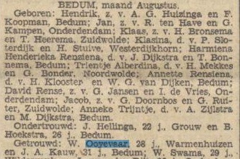2. | m | Jacobus Adrianus (Jaap) OOYEVAAR (Ooijevaar) [666], geb. op 06-05-1931 te Warmenhuizen (zie X.61). |
