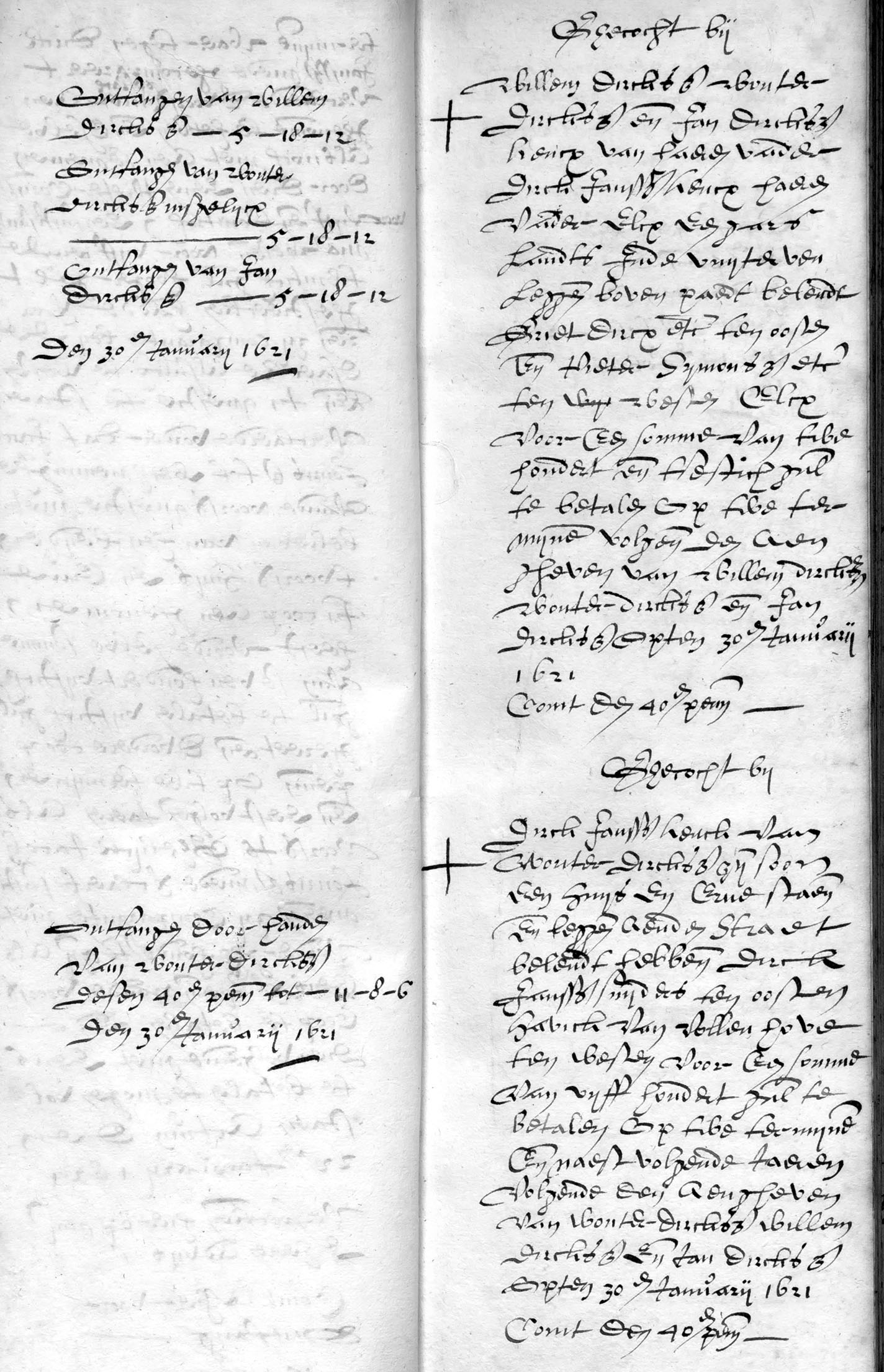betalen op twe ter mijnen ende naest volgende jaeren volgende den aengheven van Wouter Dircksz, Willem Dircksz ende Jan Dircksz opten 30en januarij 1621 comt den 40en penn[ing] |