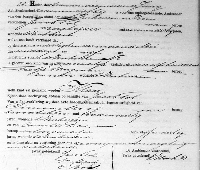 | 2. | m | Cornelis (Kees) KLAVER [37] (code: 2^06+14), geb. op 16-10-1835 te Opmeer (zie 78). |
