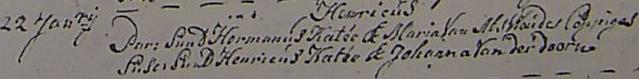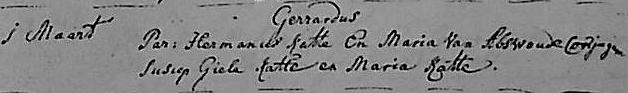 | 8. | m | Henricus (Henricus) Hermanusz KAATEE [8317]. Geb. ±01-1803 te ? (bron: ?), ged. (RK) op 22-01-1803 te Abcoude (get.: Hendricus Kaatee en Johanna van der Doorn) (bron: DTB Abcoude inv nr 2). Overl. ? te ? Begr. ? te ? |