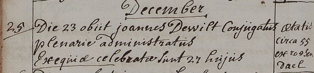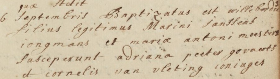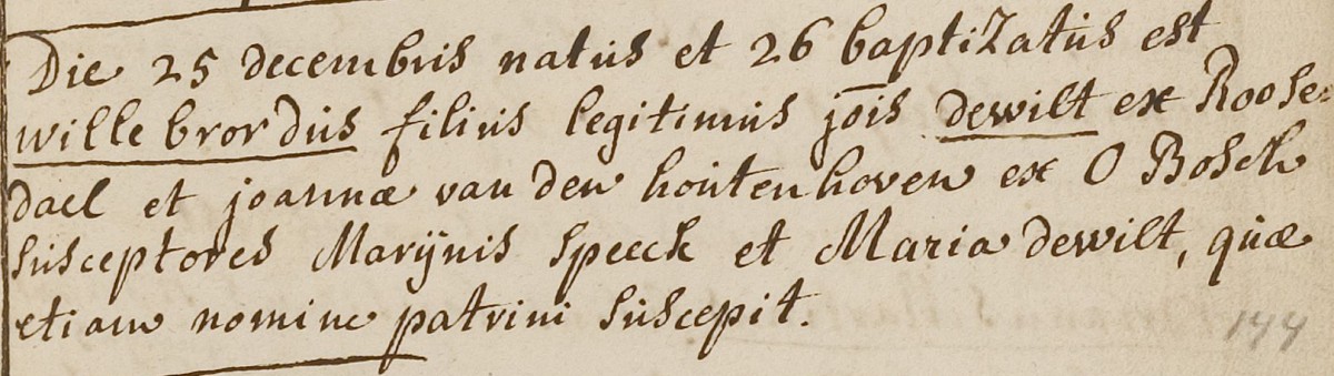 | 4. | m | Willebrordus (Willebrordus) Johannesz de WILD [9547]. Geb. op 25-12-1769 te Oudenbosch (bron: DTB Oudenbosch RK dopen inv nr 5). Overl. op 30-10-1786 te Oudenbosch op 16-jarige leeftijd (bron: ? (BRABER)), begr. ? te ? |