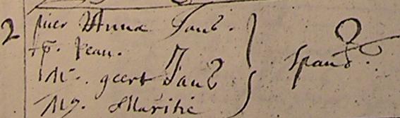 | 1. | v | Jantje (Jantje) Maartens ? [809] (code: 2^09+013), geb. ? te verm. Zwaagdijk (zie 525). |