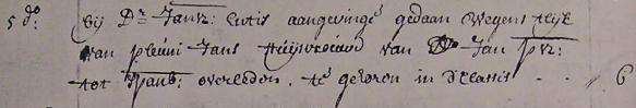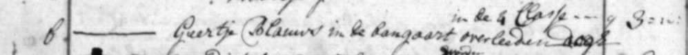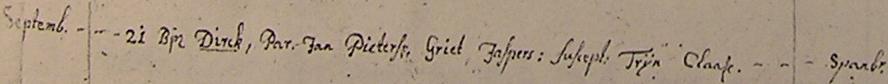 | 9. | m | Dirk (Dirk) Jansz BLAAUW [19177]. Geb. ±09-1725 te Spanbroek (bron: ?), ged. (RK) op 21-09-1725 te Spanbroek (get.: Trijn Klaas) (bron: DTB Opmeer inv nr 17). Overl. voor 1733 te ? (bron: ?), begr. ? te ? |