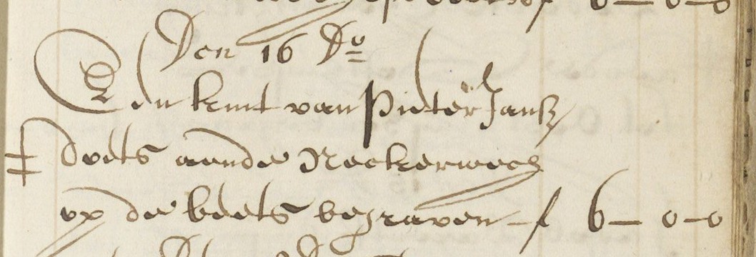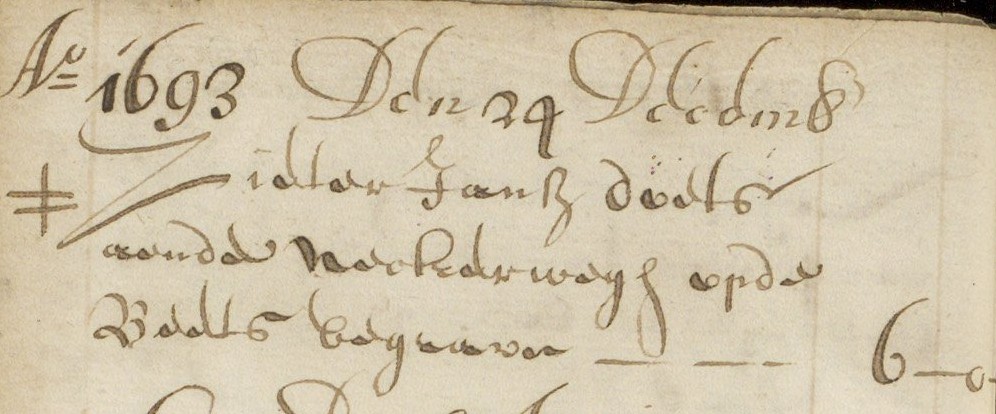| 4. | m | Jan (Jan) Reijersz ? [29869]. Geb. ? te ? Ged. ? te ? Overl. ? te ? Begr. ? te ? - Op 30-01-1680 bewijs van vaders erfenis. Dit voor de kinderen van wijlen Reijer Jan en Griet Jans. Genoemd worden Jan, Sijke, Jan Willem, Neeltje en Trijntje vrouw van Jacob Jansz Hartog. Als voogden worden genoemd Maarten Pietersz Broek en Klaas Jacobsz Hartog (bron: ? (ORA Edam inv nr 3988)). |