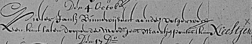 | 1. | v | Neeltje (Neeltje) Pieters BINNEWIJZEND [13908]. Geb. ±10-1700 te ? (bron: ?), ged. (NG) op 04-10-1700 te Beemster (bron: DTB Beemster inv nr 2a). Overl. voor 1725 te ? (bron: ?), begr. ? te ? |