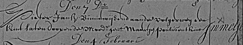 | 2. | v | Immetje (Immetje) Pieters BINNEWIJZEND [13909]. Geb. ±01-1703 te ? (bron: ?), ged. (NG) op 07-01-1703 te Beemster (bron: DTB Beemster inv nr 2a). Overl. ±07-1726 te ? (bron: ?), begr. op 06-07-1726 te Beemster (bron: DTB Beemster inv nr 7). - Op 03-07-1726 blijkt Immetje te zijn overleden. Dit volgens ORA Beemster inv nr 4082 fol 355 (bron: ?). |