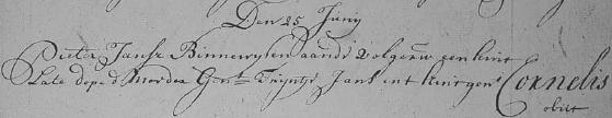 | 7. | m | Cornelis (Cornelis) Pietersz BINNEWIJZEND [13910]. Geb. ±08-1711 te ? (bron: ?), ged. (NG) op 09-08-1711 te Beemster (bron: DTB Beemster inv nr 2a). Overl. ±08-1711 te ? (bron: ?), begr. ? te ? |
