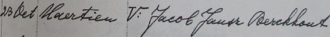 | 2. | v | Maartje (Maartje) Jacobs BERKHOUT [3323]. Geb. ±10-1695 te ? (bron: ?), ged. (NG) op 23-10-1695 te Zuid Schermer (bron: DTB Akersloot inv nr 2). Overl. ? te ? Begr. ? te ? |