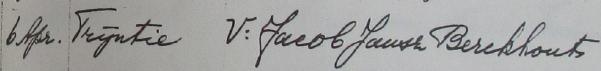 | 3. | v | Trijntje (Trijntje) Jacobs BERKHOUT [3324]. Geb. ±04-1698 te ? (bron: ?), ged. (NG) op 06-04-1698 te Zuid Schermer (bron: DTB Akersloot inv nr 2). Overl. ? te ? Begr. ? te ? |