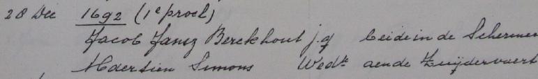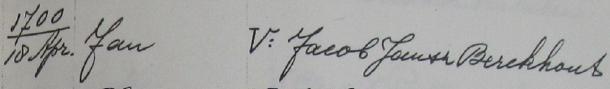 | 4. | m | Jan (Jan) Jacobsz BERKHOUT [3325]. Geb. ±04-1700 te ? (bron: ?), ged. (NG) op 18-04-1700 te Zuid Schermer (bron: DTB Akersloot inv nr 2). Overl. ? te ? Begr. ? te ? |