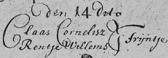 | 3. | v | Trijntje (Trijntje) Klaas KELDERMAN [16242]. Geb. ±09-1688 te ? (bron: ?), ged. (NG) op 14-09-1688 te Purmerend (bron: DTB Purmerend inv nr 4). Overl. ? te ? Begr. ? te ? |
