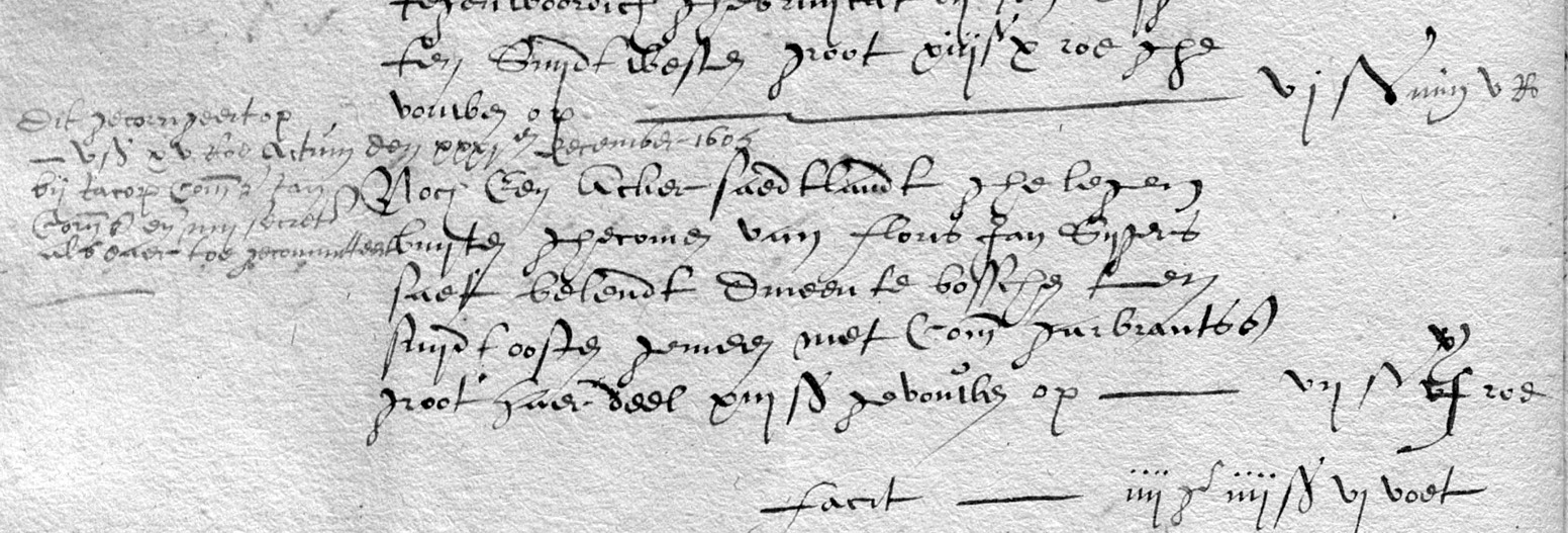 | 4. | v | Niesje (Niesje) Jans FECKE [33631]. Geb. rond 1527 te ? (bron: ?), ged. ? te ? Overl. > 06-1587 te ? (bron: ?), begr. ? te ? ZIE VOOR ONDERSTAANDE AKTES "DE VICARIE VAN SIMON WILLEMSZ" - Op 24-01-1575 wordt Reijer Jansz Jerusalem vermeld als voogd van zijn moeder en zus vanwegen een onderpand aan zijn ooms en tantes volgens een obligatie van zijn vader aan zijn grootvader (bron: ORA Nieuwe Niedorp inv nr 5655 fol 228) transcriptie - Op 15-05-1583 neemt Jan Florisz Jansz Sijgersz namens zijn moeder Niesje Jans een hypotheek. zijn moeder heeft eerder een deel verkocht Dirk Jansz Keuck. Dirk Jans Keuck wordt evenals Maarten Pietersz Fecke vermeld met naastgelegen land (bron: ORA Nieuwe Niedorp inv nr 5693 fol 8v) - Op 21-01-1585 eist Jan Florisz namens zijn moeder Niesje Jans achterstallige huur van Adriaan Klaasz Sijgers (bron: ORA Nieuwe Niedorp inv nr 5656 fol 133v) - In 1585 wordt Niesje Janss Pieters Fekke vermeld in het verpondings register aan de hogezijde van Nieuwe Niedorp met land naast Maarten Pietersz Fecke (bron: OA Niedorp inv nr 552-69 fol 10) - Op 17-03-1586 wordt het kind van Cornelis Jacobsz Rood en Reinoutje Floris genaamd Floris Cornelisz Rood ingeschreven in het weesboek. De financiën worden bijgehouden tot 20-02-1615. Vermeld worden: - Grootmoeder Niesje Jansz wegens haar erfenis van 50 gulden op 14-02-1608 en de aanspraak op een obligatie op naam van Klaas Adriaansz Heins vermeld wegens de betaling van 65 gulden- 12 stuivers en rente uit de obligatie op 29-01-1611 en de betaling van de obligatie op 10-02-1611; (bron: ORA Nieuwe Niedorp inv nr 5732 fol 138 en vanaf 12-1594 fol 169) - Op 22-10-1597 testament van Niesje Jans weduwe van Floris Jansz. Vermeld worden haar dochter Guurtje Floris, de kinderen van wijlen Jan Florisz, de kinderen van oude Trijn Floris, de kinderen van jonge Trijn Floris en Adriaan Hilbrandsz genaamd Aafje en Trijntje, Reinoutje Floris moeder van Floris Cornelisz en Maartje Floris haar dochter Neeltje Hilbrandsz. Verwijzing naar een eerder testament van 13-12-1584 voor notaris Cosmas Claesz te Spanbroek. (bron: ONA Nieuwe Niedorp inv nr 3877 fol 3) - Op 14-02-1608 wordt Floris Cornelisz vermeld als erfgenaam van zijn grootmoeder Niesje, Floris [weduwe] (bron: ORA Nieuwe Niedorp inv nr 5732 fol 169) - Op 18-02-1606 verkopen de erfgenamen van wijlen Niesje Jans weduwe van Jan Floris een stukje land aan Jan Reijersz Schagen. Vermeld worden Cornelis Klaasz Kruif [man van Neeltje Hilbrands] samen met Adriaan Meijndersts als voogd van Guurtje Floris haar kinderen, Pieter Klaasz Kuiper, Floris Cornelisz [Rood] met zijn voogd Jan Evertsz, [de man van Aafje Adriaans] Garbrand Cornelisz [Kramer] en de man van Dieuwer Jan Florisz, Jan Allertsz (bron: ORA Nieuwe Niedorp inv nr 5694 fol 62v) - Op 07-06-1616 verklaring op verzoek van Cornelis Jansz Fecke door: 1) Jan Simonsz [Munnick] (72) stadsbode te Nieuwe Niedorp, hij verklaart: - Dat Jacob Jacobsz [Munnick] en zijn moeder na het overlijden van Grote Reijer de volgende verwanten hebben benoemd, Cornelis Jansz Molenaar met zijn zus Niesje Jans, Trijntje Jacobs [Munnick] de zus van Jacob Jacobsz [Munnick], Jan Adriaansz van Schagen, Maartje Wouters met Trijntje Wouters en Aaltje Matthijs met Catrina Matthijs van de Keins (bron: OA Nieuwe Niedorp inv nr 552-137 fol 205) - Rond 06-1616 verklaring op verzoek van Jan Adriaansz van Schagen / Molenmaker uit Schoorl door: 1) Jan Simonsz Munnick (71) stadbode broer van Trijntje Simons Munnick (67) (oude of jonge) uit Nieuwe Niedorp, hij verklaart: - Dat zijn moeder na de dood van zijn oom, vicaris Jacob Jacobsz [Munnick], de volgende 8 nog levende nazaten van Simon Willemsz heeft genoemd, Cornelis Jansz Molenaer met zijn zus Niesje Jansz [Fecke], Trijntje Jacobsz [Munnick], de zus van de overleden Jacob Jacobsz [Munnick], Jan Adriaansz alias Jan van Schagen, Maartje Wouters, Trijntje Wouters, Catharina Thijs en haar zus [Aaltje Thijs] de moeder van Antje Cornelis mede getuigen (bron: OA Nieuwe Niedorp inv nr 552-114 fol 36) Otr. [10090] ? te ? Tr. rond 1551 te ? (bron: ?), tr. kerk ? te ? Echtgenoot is Floris (Floris) Jansz SIJGERSZ [33664]. Geb. ? te ? Ged. ? te ? Overl. < 01-1775 te ? (bron: ?), begr. ? te ? Zn. van Jan (Jan) SIJGERS [33665] en ? (?) ? [33666]. ZIE VOOR ONDERSTAANDE AKTES "DE VICARIE VAN SIMON WILLEMSZ" - Op 22-07-1566 wordt Floris Jansz Sijgers met zijn broer Reijer Jans vermeld als voogd via vaders zijde van de kinderen van wijlen Jan Pieter Comen Jansz en Neel Simonsz genaamd Pieter Jansz en Maartje Jans. Dit samen met stiefvader Willem Jansz, grootvader Sijmon Remmens en oom Hendrik Simonszmet de broer van Jan Pieter Comen Jansz, Jan Pieter. Hij wordt mede genoemd op 01-06-1567 / 25-07-1568 / 26-06-1569 / 27-8-1570 / 21-10-1571 / 22-03-1572 / 26-03-1573 (bron: ORA Nieuwe Niedorp inv nr 5732 fol 83) - Rond 08-1573 tijdens het beleg van Alkmaar worden de gemaakt kosten bijgehouden hierin vinden we Floris Jansz Sijgers terug. Dit voor haver, (bron: OA Nieuwe Niedorp inv nr 552-139) - Rond 1580 verdeling nalatenschap door Trijntje Floris weduwe van Klaas Pieter Jan Rog en thans vrouw van Klaas Heertjes tussen de 3 kinderen uit haar huwelijk met Klaas Pieter Jan Rog en het kind met Klaas Heertjes. Als voogden over de kinderen van van Klaas Pieter Jansz Rog en Trijntje Floris worden vermeld: Klaas Kruif, de drie ooms Jan Floris, Klaas Garbrantsz en Mattheus Pieters, de twee oud ooms Reijer Jansz [33647 ?] en Jan Sijvertsz , de verwanten Cornelis Bartolomeus, Dirk Jansz en Tijs Pietersz. De tweede man Klaas Heertjes wordt bijgestaan door zijn vader Heertje Gerritsz en Garbrand Heertjes. Floris Jansz [Sijgers ?] [33664 ?] en jonge Pieter Jan Rogs worden vermeld met naastgelegen land (bron: ORA Nieuwe Niedorp inv nr 5737 fol 26) In 1604 wordt het land gekomen van Floris Jansz Sijgers [33664] vermeld vermeld in het verpondings register aan de hogezijde van Nieuwe Niedorp (bron: OA Niedorp inv nr 552-69a fol 45v + 52v) |