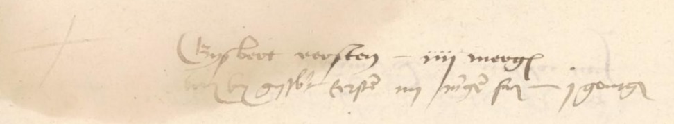 | 6. | v | ? (?) Eersts PAUW [29049]. Geb. ? te ? Ged. ? te ? Overl. ? te ? Begr. ? te ? Otr. [8730] ? te ? Tr. ? te ? Tr. kerk ? te ? Echtgenoot is ? (?) de CRUIJFF (Cruve) [29050]. Geb. ? te ? Ged. ? te ? Overl. ? te ? Begr. ? te ? Zn. van ? (?) de CRUIJFF [29051] en ? (?) ? [29052]. [-In 1501 wordt ene Willem die Cruijff vermeld als gebruiker van 20 morgen in 't Goy en samen met Jan van Tiel de helft van 20 morgen in Schalkwijk in het morgengeld register. (bron: Staten van Utrecht inv nr 58-349) -In 1511 wordt ene Willem die Cruijff vermeld als gebruiker van 20 morgen in 't Goy en samen met Jan van Tiel de helft van 20 morgen in Schalkwijk in het morgengeld register. (bron: Staten van Utrecht inv nr 58-352) - In 1517 betaald ene Willem Gijsbertsz die Cruijff 3 gulden huisgeld in 't Schalkwijk. Dit volgens Staten van Utrecht inf 58-379 (bron: ? (Utrechtse Parentelen voor 1650 deel 5)) - In 1517 betaald ene Willem Gijsbertsz die Cruijff 3 gulden huisgeld in 't Schalkwijk. Dit volgens Staten van Utrecht inf 58-381 (bron: ? (Utrechtse Parentelen voor 1650 deel 5)) - In 1525 wordt ene Willem die Cruijff vermeld als bewoner van Goijert van Vourts huis in Schalkwijk in het huisgeld register. Dit volgens Staten van Utrecht inf 58-373 (bron: ? (Utrechtse Parentelen voor 1650 deel 5))]. - Op 10-07-1537 overdracht van de erfenis van Anthonis Eersten door zijn broer Jan Eerstensz man van Cornelia te Jutphaas aan o.a. de kinderen van zijn zuster genaamd Jan die Cruijff, Heijlwich de Cruijff, Maria de Cruijff en Sophia [de Cruijff] vrouw van Tyman de Geer. Antonius Eersten is hun oom. (bron: 701-3 Hof Utrecht 704-23 fol 113) - Op 23-01-1543 boedelscheiding van de erfgenamen van Anthonis Eerstensz en Gijsbertje Jans Hendriksz. Als erfgenamen van Antonis Eersten worden o.a. Jan de Cruijf, Er volgte een verklaring van Jan de Cruijf man van Aagt welke verklaart de erfenis te hebben voldaan aan hun kinderen Adriaan [Jansz] die Cruijff en Marije [Jans] die Cruijff, zijn broer Willem die Cruijff, zijn zus Heijl die Cruijff en [haar man] Adriaan Gijsbertsz tot O[d]eijck. (bron: 701-3 Utrecht 704-29) |