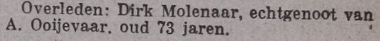 | 3. | m | Johannes Theodorus (Jan) SMIT [1400] . Geb. op 01-06-1929 te Warmenhuizen (bron: ?), ged. ? te ? Otr. [308] ? te ? Tr. ? te Warmenhuizen (bron: ?), tr. kerk ? te ? Echtgenote is Catharina Margaretha Maria (Tiny) VADER [1590]. Geb. op 24-09-1932 te Alkmaar (bron: ?), ged. ? te ? Overl. op 24-05-2017 te Warmenhuizen op 84-jarige leeftijd (bron: ?), begr. op 27-07-2017 te Schagen (bron: ?). Dr. van ? (?) VADER [1591] en ? (?) ? [1592].